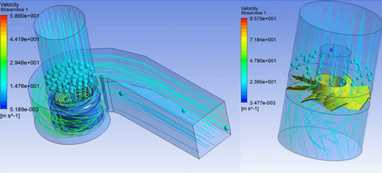 (開發的離心風機、軸流風機模(mó)型流場(chǎng)流線圖)