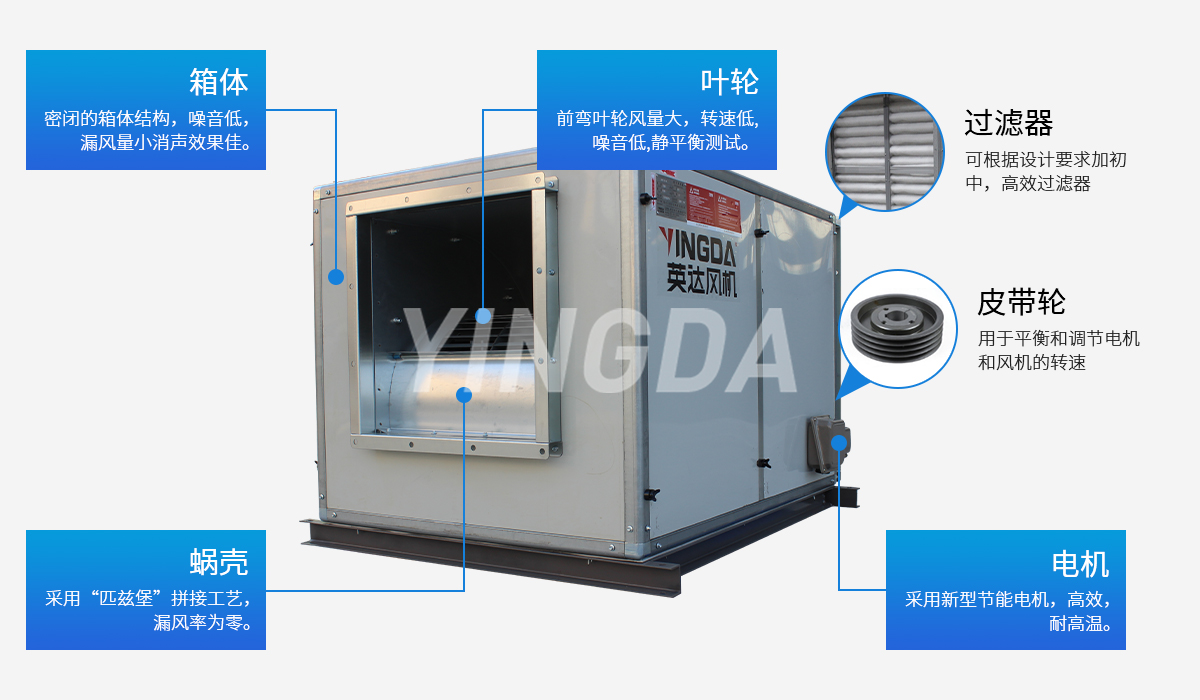為了適應空氣淨化需要,風機可做成高效淨化型,根(gēn)據要(yào)求要求做初效(xiào)過濾, 中效過濾,高效過濾,及活性(xìng)炭過濾。